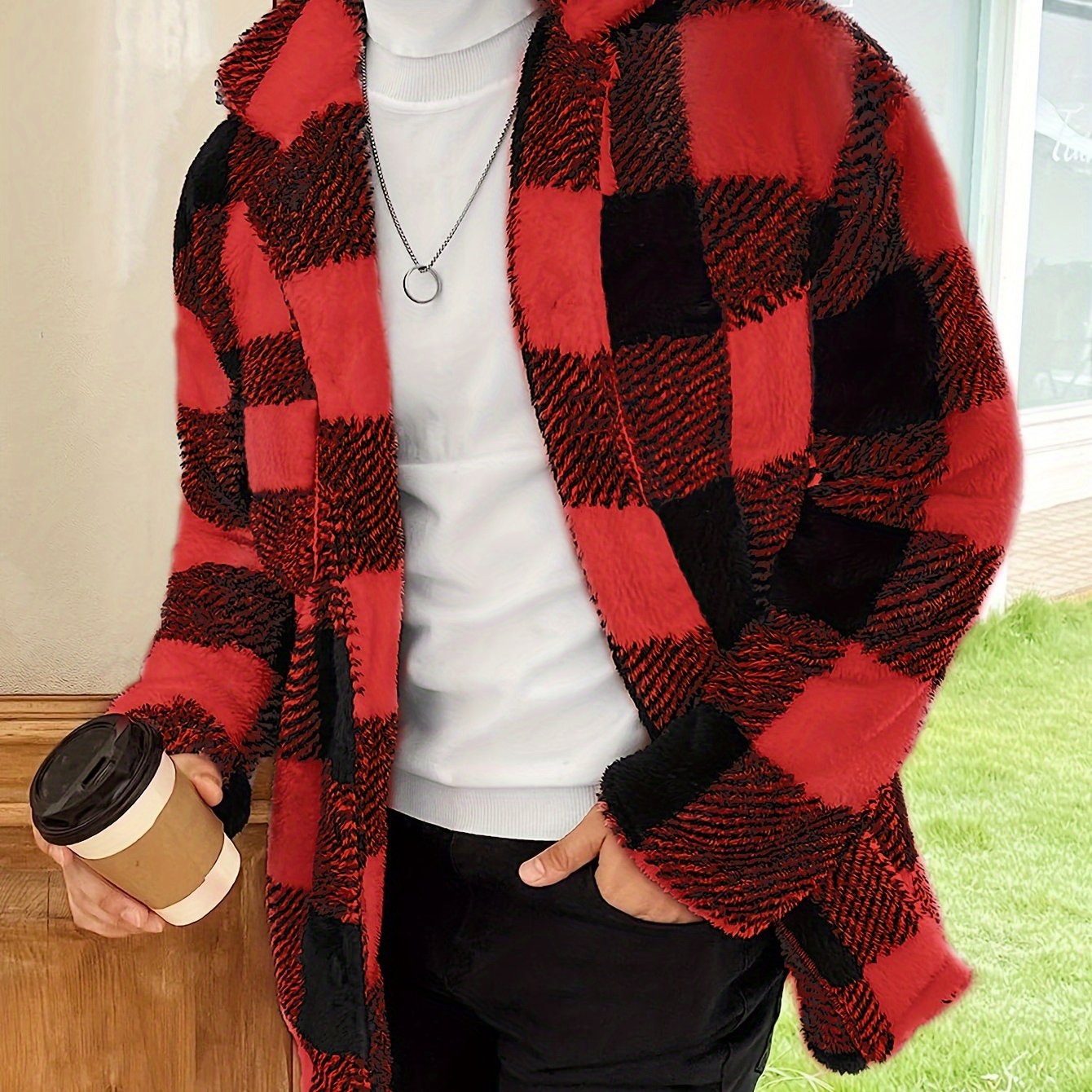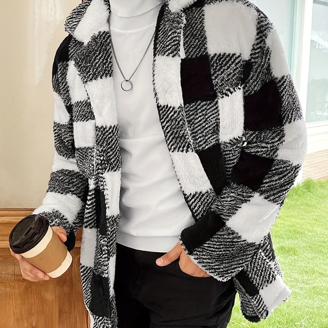 Men’s Retro Plaid Warm Fleece Zip Up Hoodie For Fall Winter