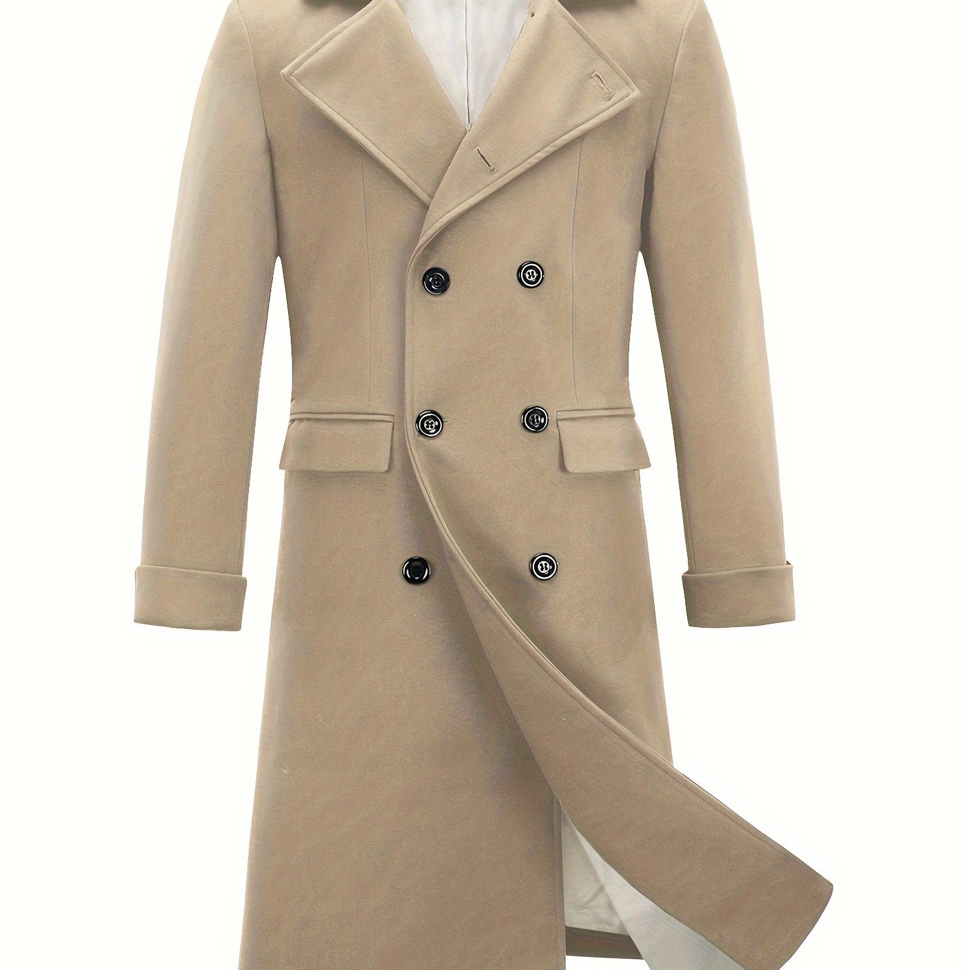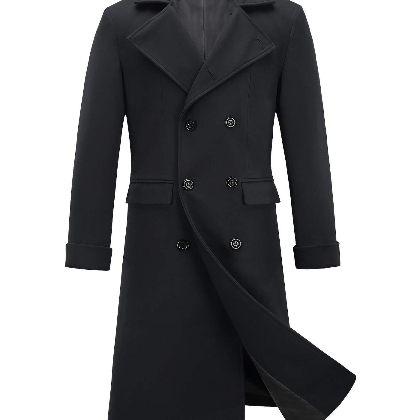 Men’s Notch Lapel Double Breasted Long Trench Coat Casual Windproof Overcoat