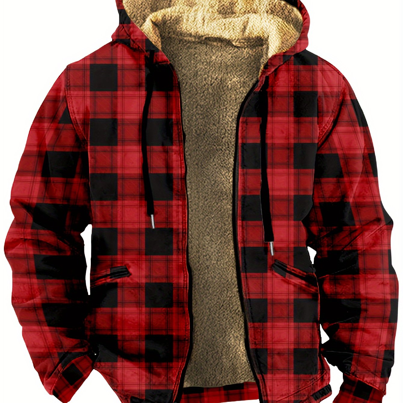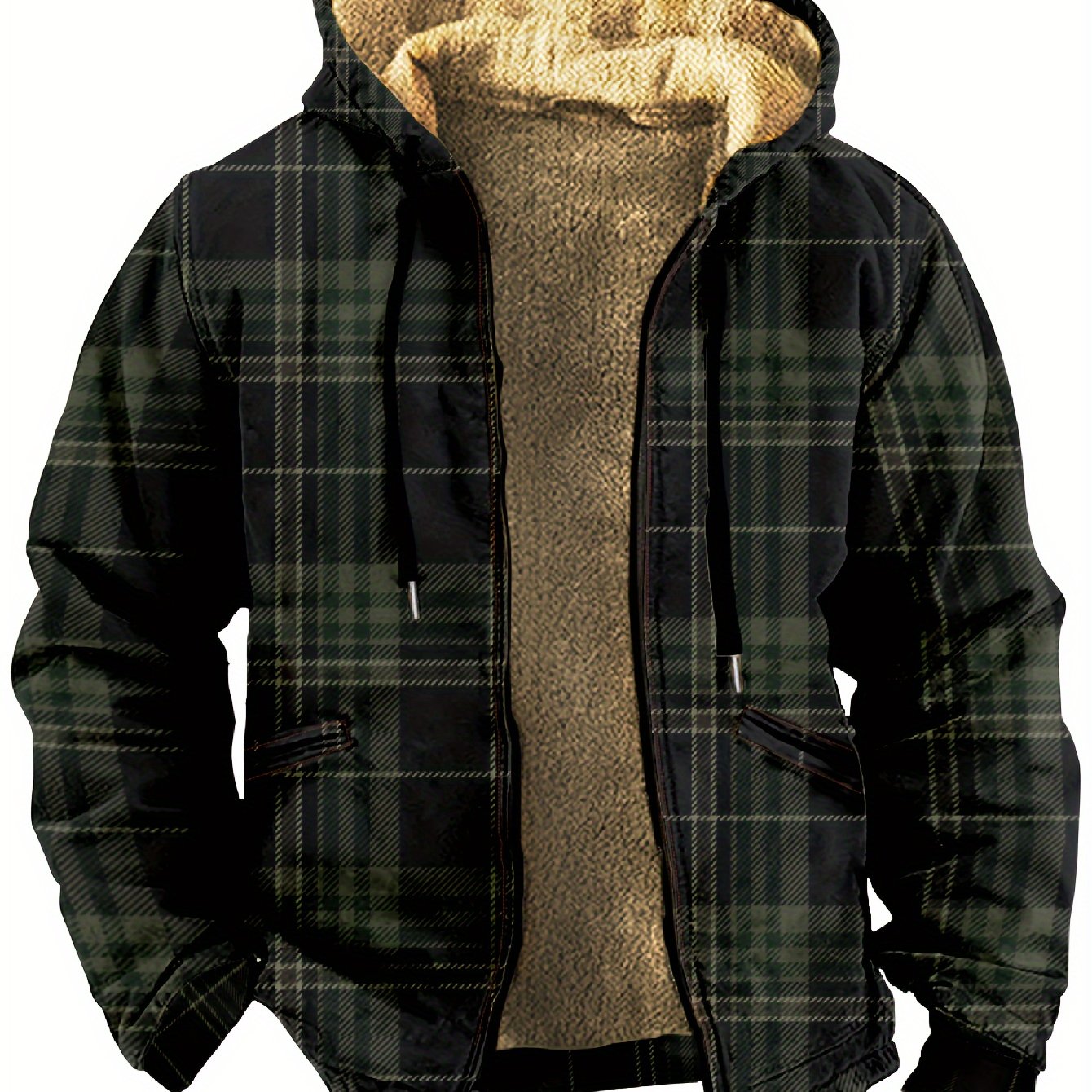 Home Men's Jackets &Coats Men’s Retro Plaid Warm Fleece Zip Up Hoodie For Fall Winter