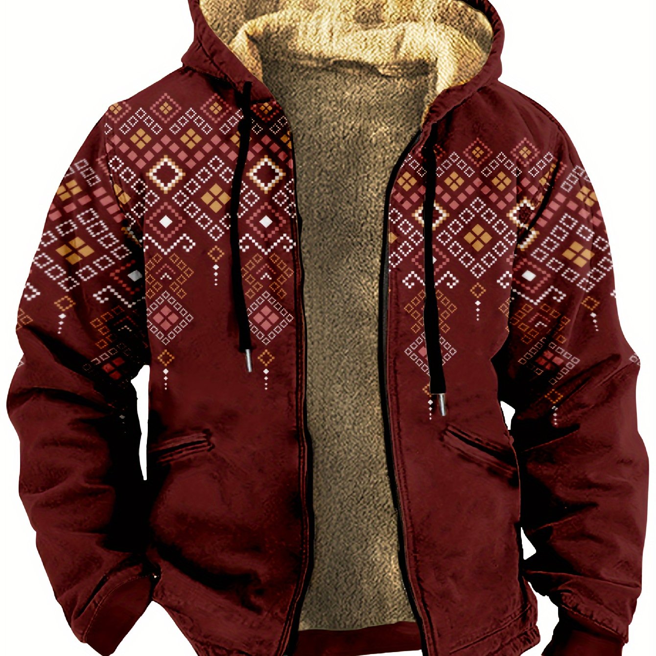 Men’s Retro Plaid Warm Fleece Zip Up Hoodie For Fall Winter