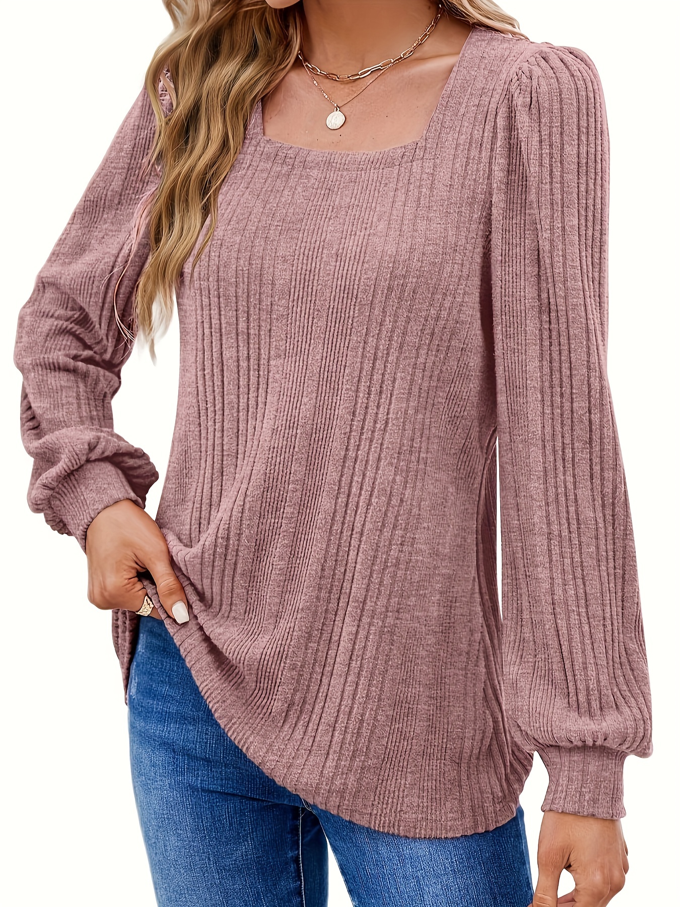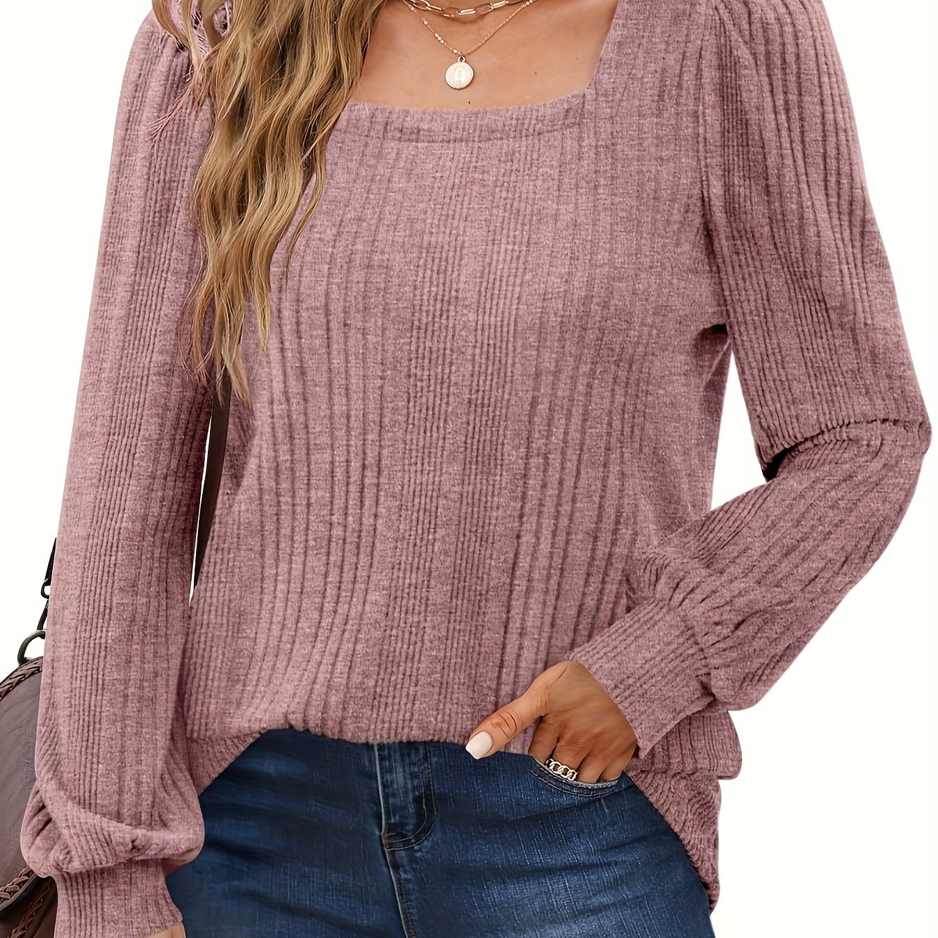 i can say is that Solid Square Neck Rib Knit Top, Elegant Long Sleeve Sweater For Spring & Fall, Women’s Clothing is great. I like it.
