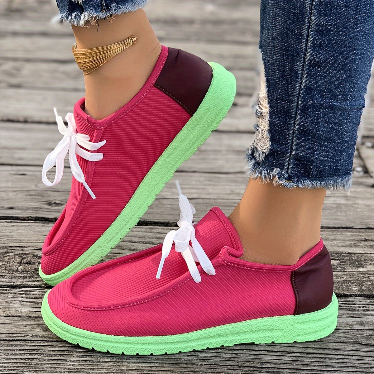 Home Women's Canvas Shoes Women’s Contrast Color Flat Shoes, Round Toe Low Top Slip On Sneakers, Comfy Outdoor Walking Shoes