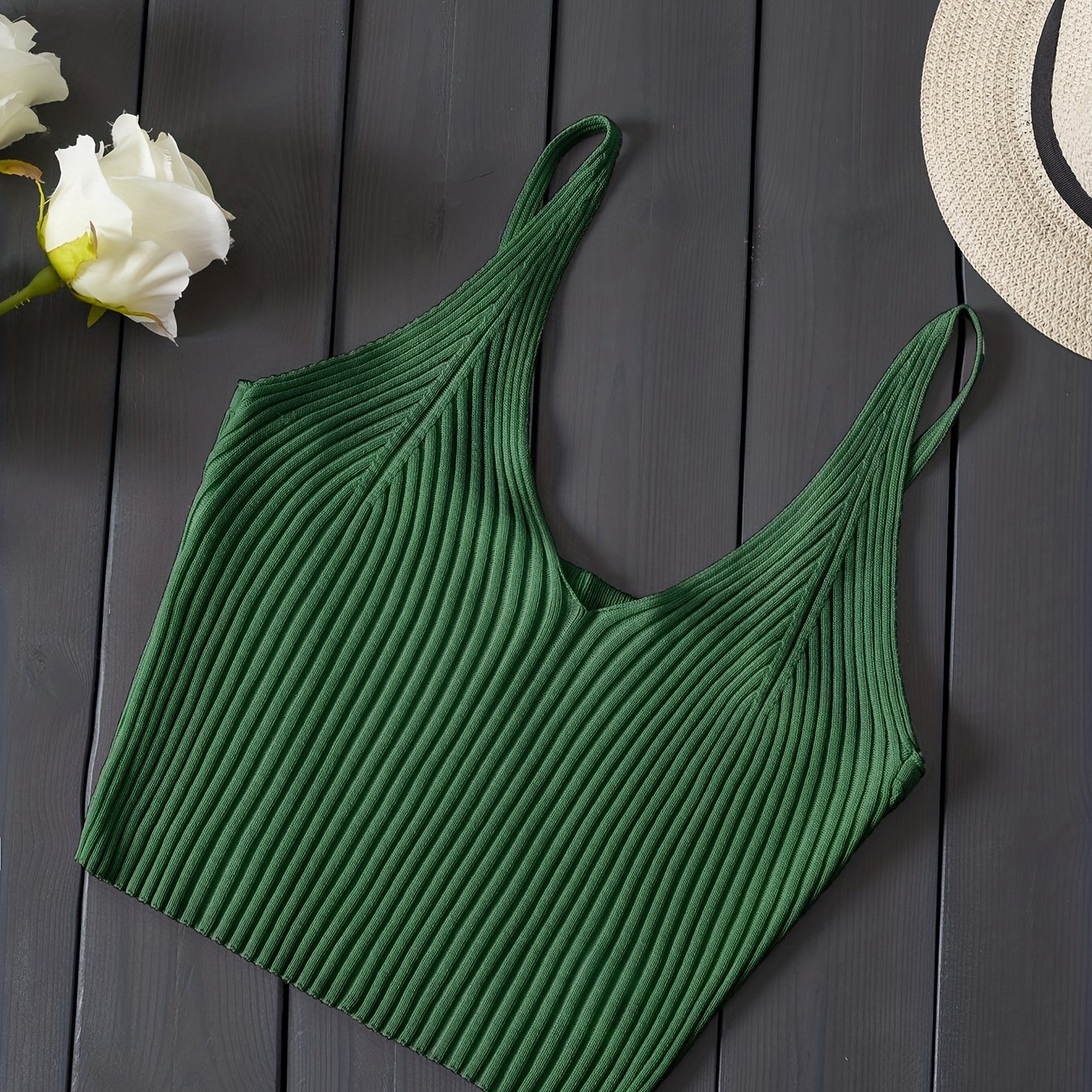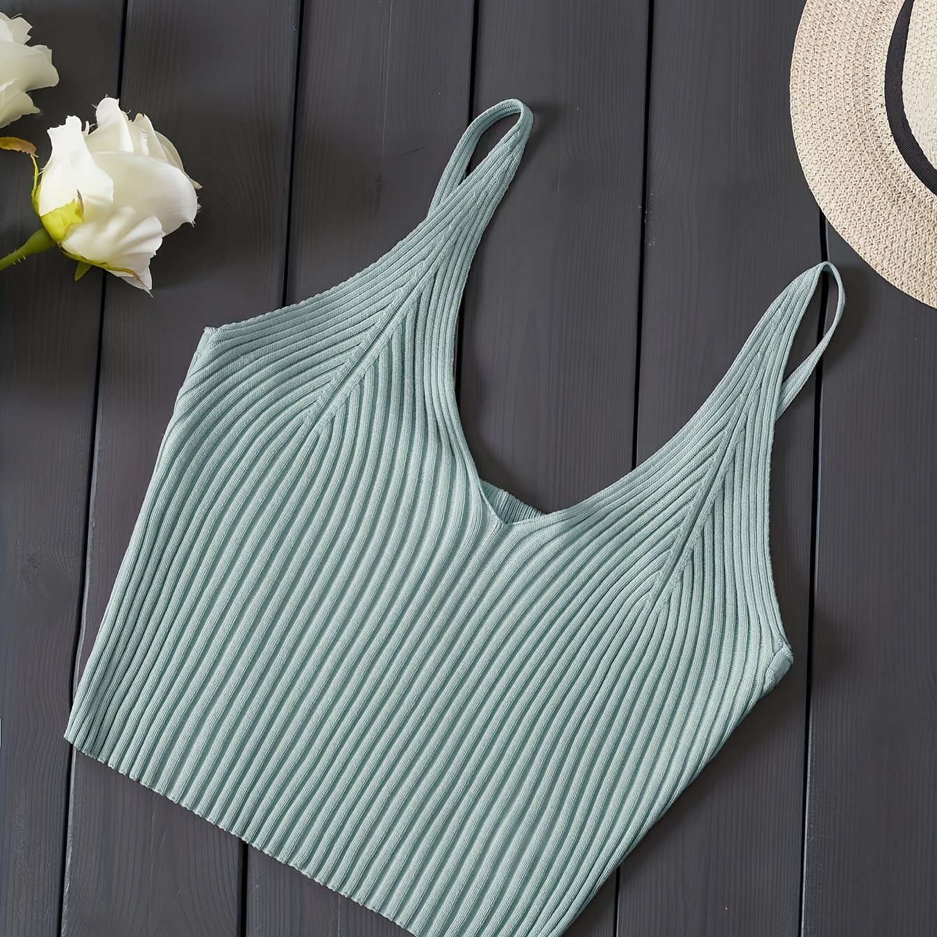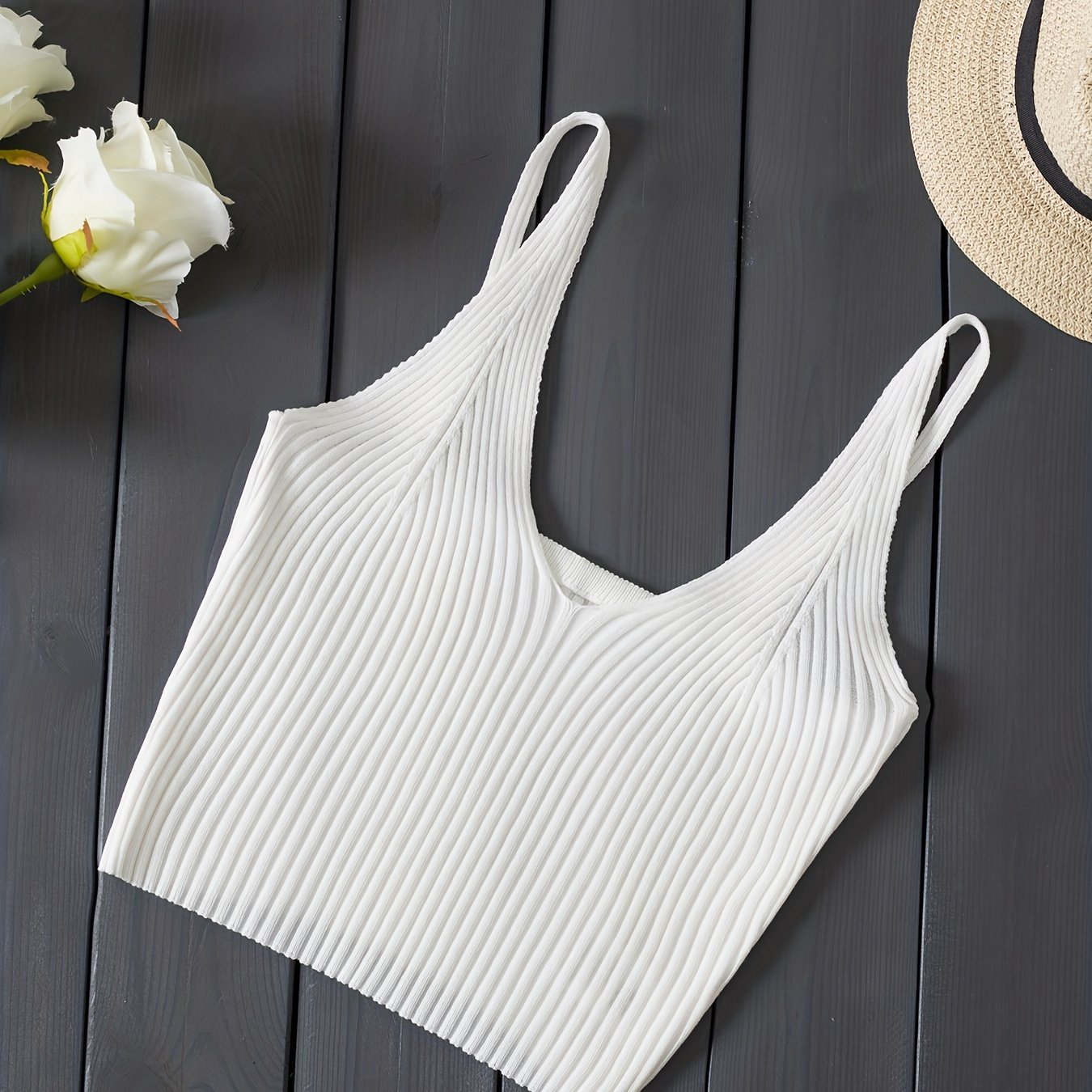 Solid Knitted Tank Top, Casual Sleeveless V Neck Vest, Women’s Clothing