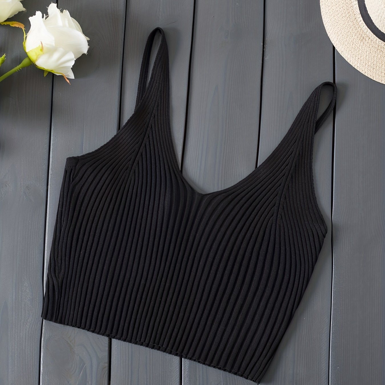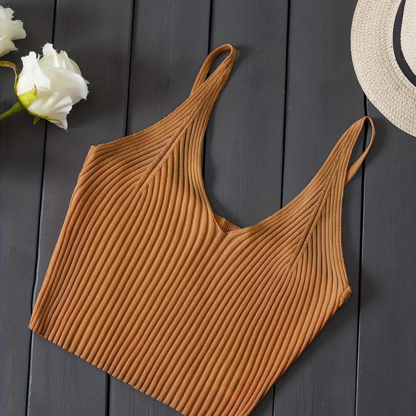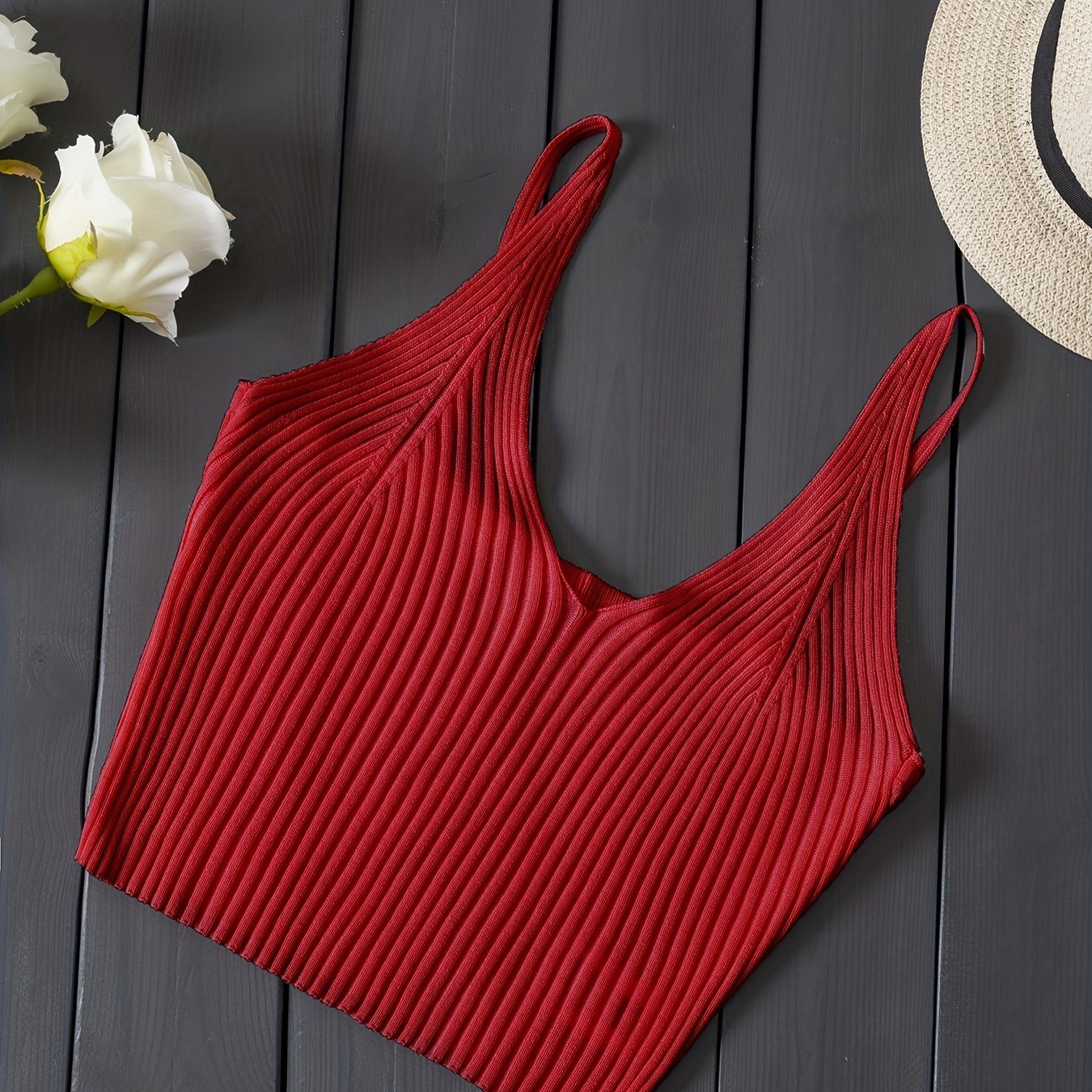 Solid Knitted Tank Top, Casual Sleeveless V Neck Vest, Women’s Clothing
